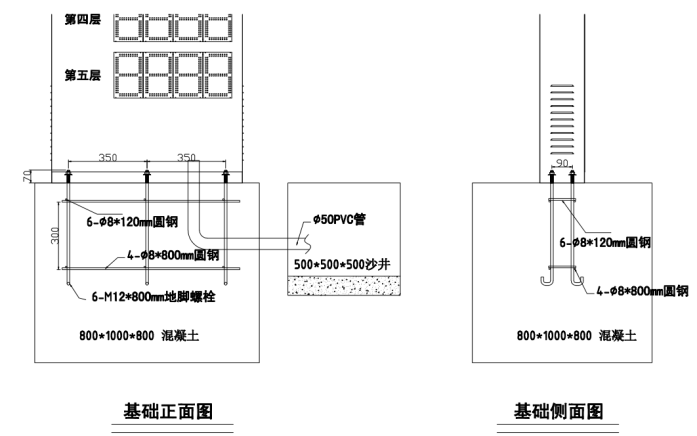 戶外引導(dǎo)大屏采用螺釘緊固安裝。將Φ8圓鋼、地腳螺釘(M12*500)制造地籠,如圖4.2所示,然后將地籠及PVC穿線管(Φ50)預(yù)埋入800*1000*800mm混凝土,待自然凝固后,再將戶外引導(dǎo)大屏固定到地腳螺釘上即可。(本說明僅供參考,施工請按照《建筑地基基礎(chǔ)工程施工質(zhì)量驗收規(guī)范》GB50202-2002)