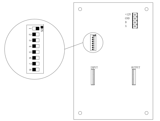 注意:可以手拉手串聯(lián)其他的車位引導(dǎo)屏,每一路RS485總線串聯(lián)LED模組的數(shù)量總計不能超過8個。